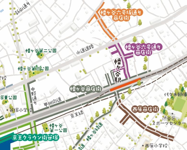 幡ヶ谷商店街とは幡ヶ谷商店街振興組合は、京王線幡ヶ谷駅を中心とする広範囲の商店・事業所によって昭和24年(1949)任意組合幡ヶ谷商盛会として発足し、昭和30年(1955)法制化に伴い幡ヶ谷商盛会協同組合を設立、次いで昭和38年(1963)振興組合法の施行により幡ヶ谷商店街振興組合が設立され今日に至っています。